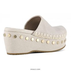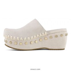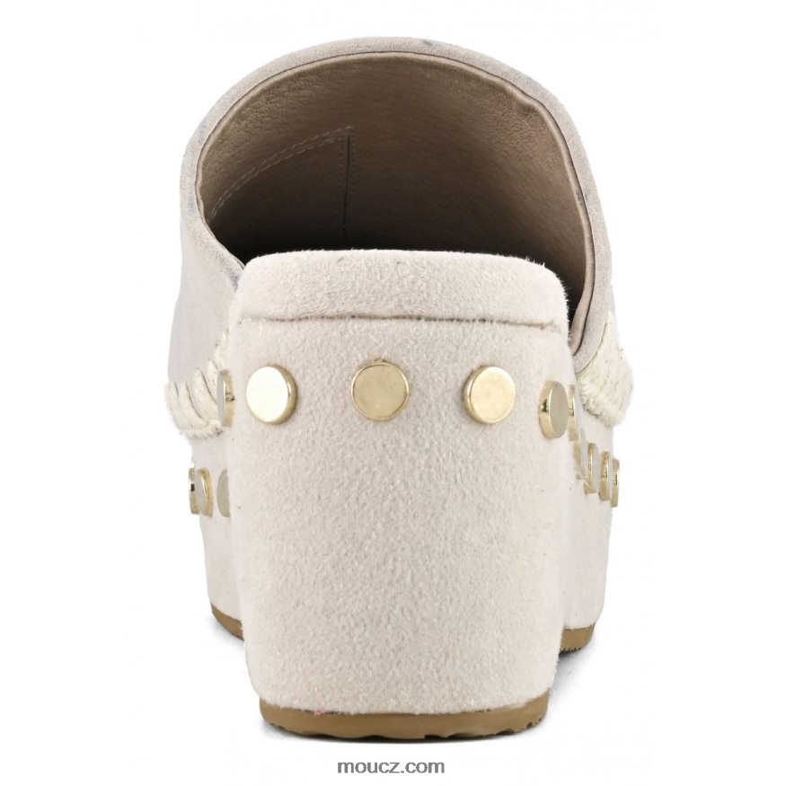 novinka pro ss23, mou letní dřevák z krásné křídové tkaniny s charakteristickými detaily mou bavlněného háčkovaného stehu. podpůrná, lehká pata je zakončena polstrovanou semišovou stélkou pro větší pohodlí. výška špuntu 6,7 cm.