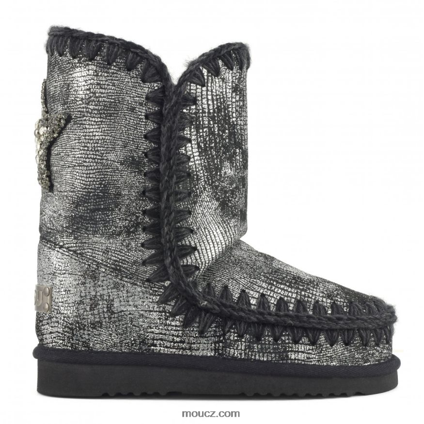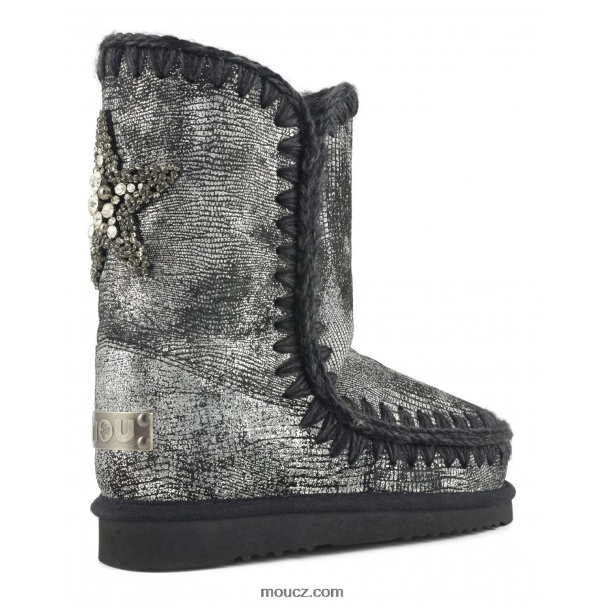 Naše ikonické mou eskimo 24cm je nabízeno v mikrotřpytivé kůži a zadní hvězdicové nášivce s kamínkovým detailem. tento styl nabízí sofistikované barvy, decentní design a řemeslné zpracování. Módní volba na zimu, eskymák je vyroben z božsky hřejivé dvoulícní ovčí kůže, ručně háčkovaných vlněných švů, podpůrné paty a venkovní podešve z eva a gumy. výška 24 cm. pravidelný střih.