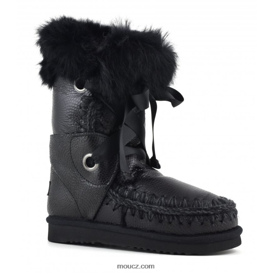 cz Mou ženy eskymácká krajka a kožešina embosovaná spirála černá D4T48P310