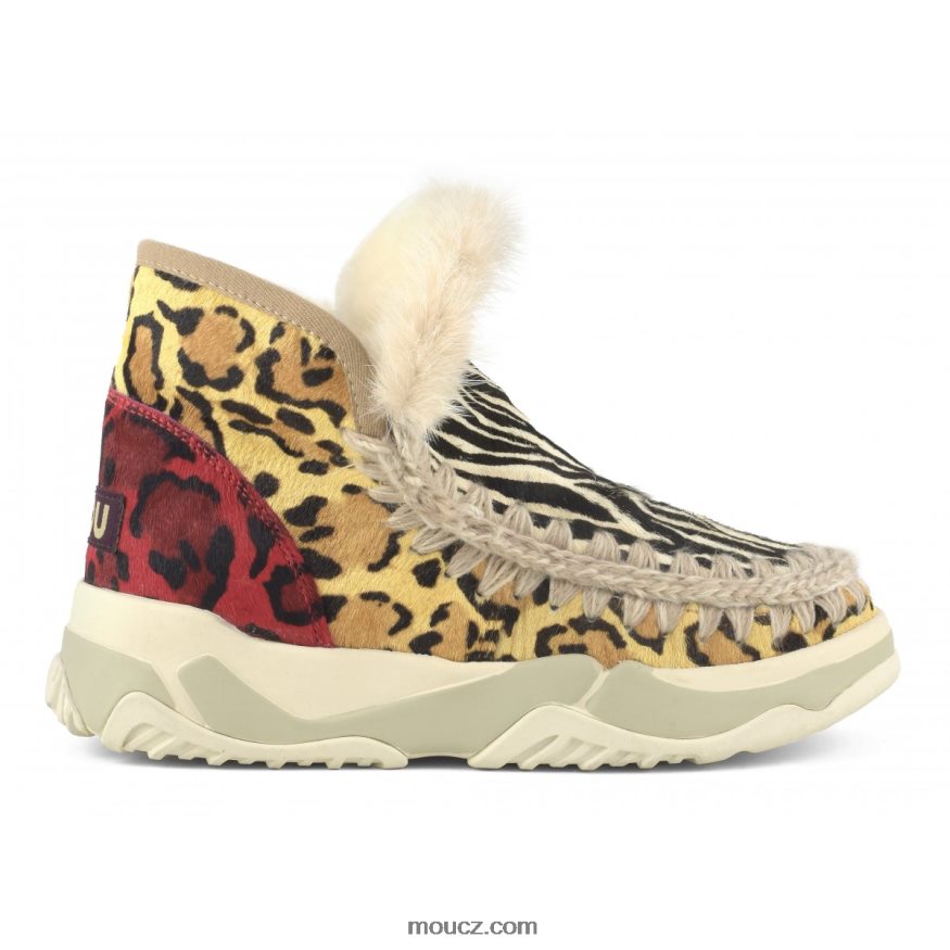 Vícebarevný cvičitel poníků s leopardím vzorem a luxusním kožešinovým lemem zajistí, že vaše nohy zůstanou šik a útulné. Vlněné stehy značky mou a měkká ovčí kůže s dvojitým lícem jsou spojeny s odolnou a pohodlnou podrážkou, která vás tuto zimu vezme kamkoli. výška 14,5 cm.