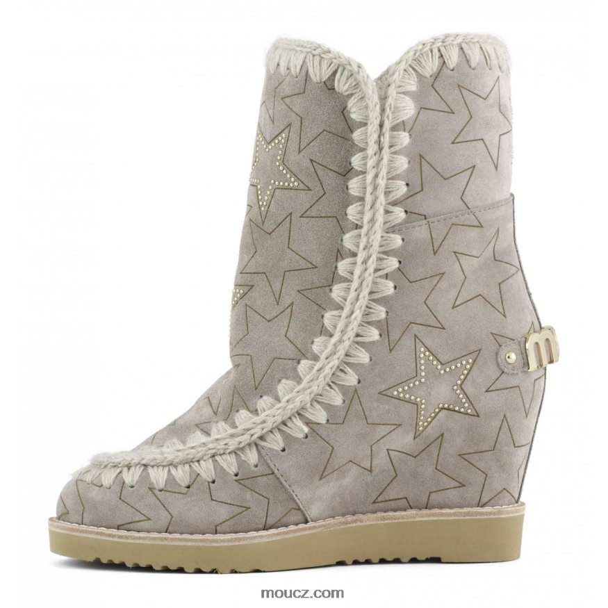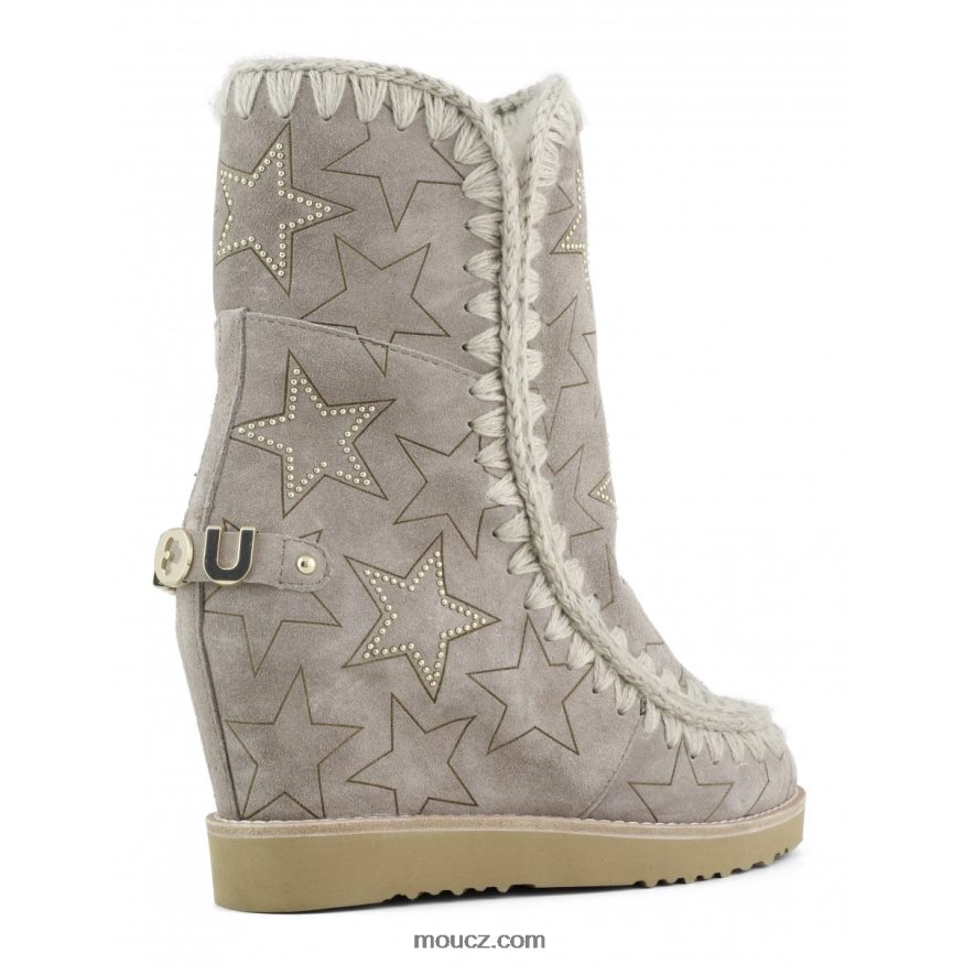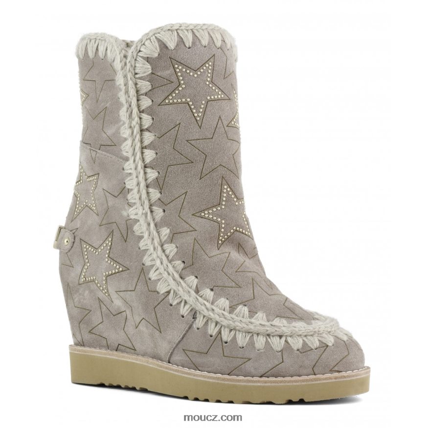 francouzské krátké zimní boty na klínku s laserovými hvězdičkami a mikrocvoky. Tento design je odborně ručně vyrobený řemeslným vlněným stehem na prémiové nubukové kůži a je plně podšitý pravou ovčí kůží, takže je luxusně teplý, šik a neuvěřitelně pohodlný. flexibilní podešev z eva & gumy je odolná a praktická do zimních teplot. výška boty: 25,5 cm. vyrobeno se skrytým vnitřním klínovým podpatkem tlumícím nárazy o výšce 7 cm. pravidelný střih.
