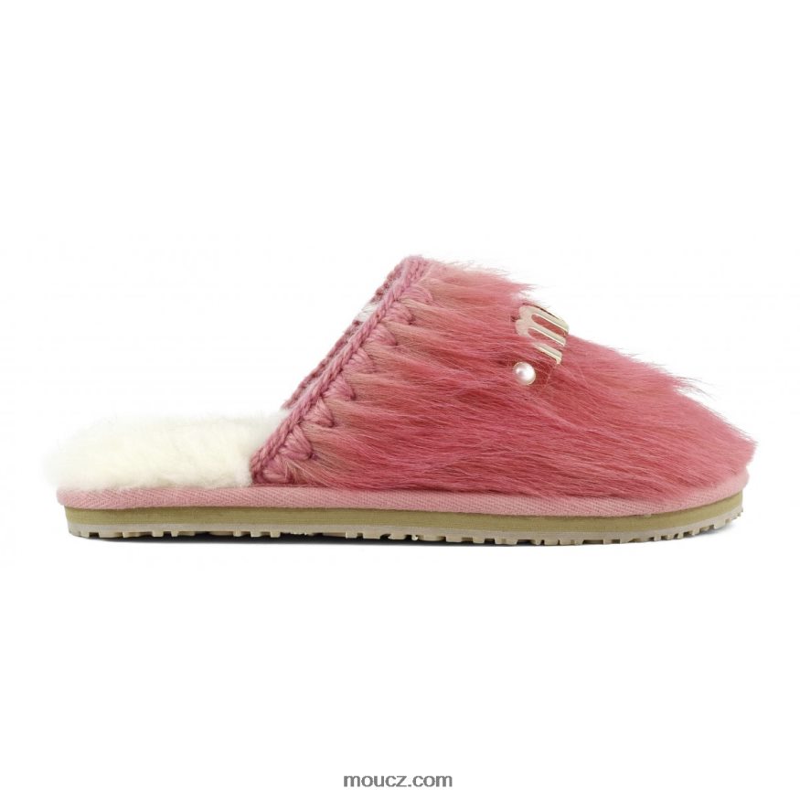 cz Mou ženy kožešinová pantofle s uzavřenou špičkou s logem dlouhé vlasy ponyskin dlouhé vlasy pony růžové fuxia D4T48P501