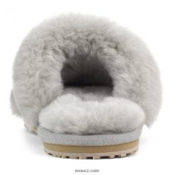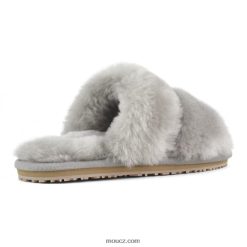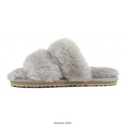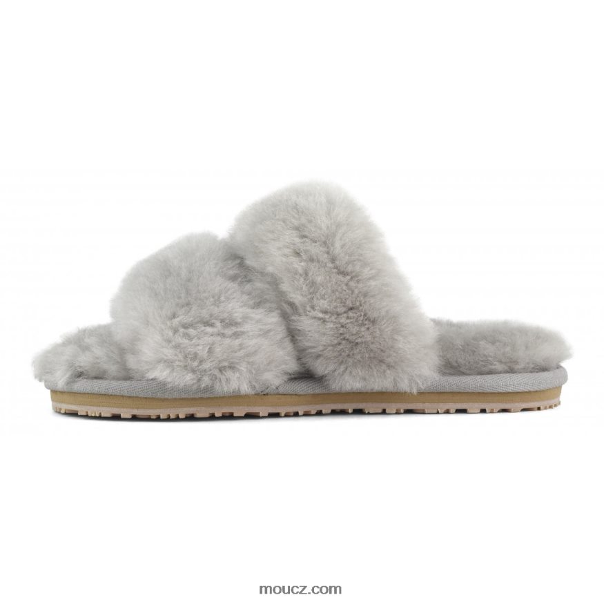 cz Mou ženy Pantofle se 2 pruhy z ovčí kůže světle šedá D4T48P453