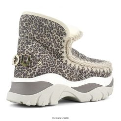 hrubé eskymácké tenisky s velkým kovovým logem z kůže s gepardím potiskem. řemeslně ručně vyrobené z čisté ovčí kůže s dvojitým lícem se zdobením z vlny s ochrannou známkou mou, podpůrná pata a lehká podrážka z eva a gumy dělají tento styl teplý, pohodlný a odolný. výška: 18 cm.
