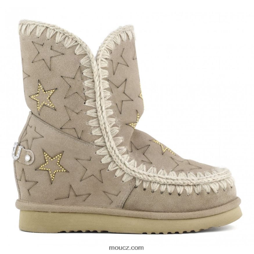 eskymácké klínové šortky s laserovými hvězdičkami a mikrocvočky v sobě spojují to nejlepší z ikony mouchy, s 5 cm skrytým podpatkem a štíhlejším tvarem. neuvěřitelně pohodlný a lichotivý, tento styl je vyroben z měkké pravé ovčí kůže, ručně háčkovaných vlněných švů, podpůrné paty a odolné eva a gumové podrážky. k dispozici ve speciálních povrchových úpravách prachu a metalické kůže. výška 23 cm. pravidelný střih.