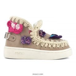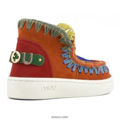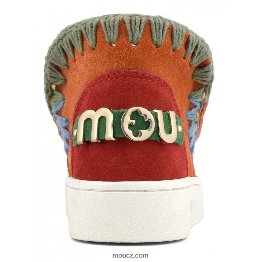 poutavé barevné eskymácké tenisky pro děti. Tento styl kombinuje to nejlepší z mou eskimo s módními teniskami a je ručně vyroben s detaily háčkovaných stehů značky Mo, svrškem z pravé semišové kůže, dvoubarevnou pruhovanou bavlněnou podšívkou, polstrovanou semišovou stélkou a lehkou a odolnou gumovou podrážkou . výška 11 cm.