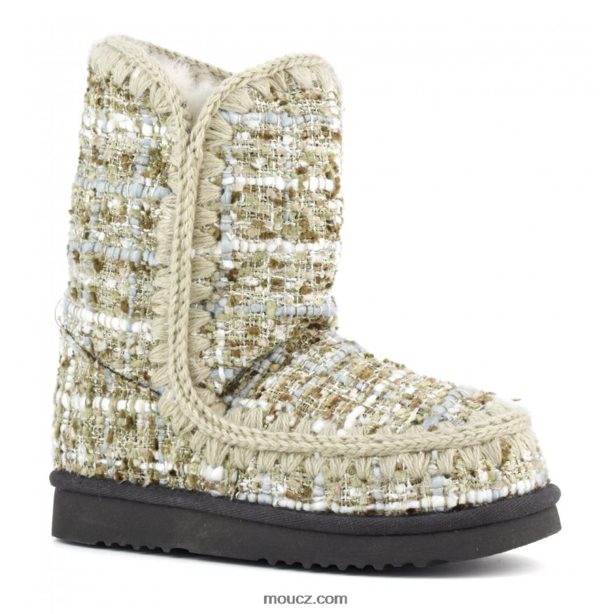 náš ikonický mou eskymák v báječné vlněné látce bouclé. Tento styl je podšitý pravou, měkkou ovčí kůží, s ručně háčkovanými detaily stehů z vlny, podpůrnou patou a venkovní podrážkou z eva a gumy, tento styl je šik, pohodlný a odolný. výška 24 cm. pravidelný střih.