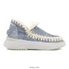 eskymácký jogger je lehký a pohodlný styl, který je odborně ručně vyroben se semišovým svrškem, háčkovanými stehy značky Mo, podšívkou z dvoubarevného pruhovaného bavlněného plátna, polstrovanou koženou stélkou; podpůrná pata a pružná gumová podrážka. výška 16 cm.
